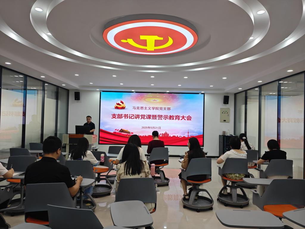 为扎实推动深入贯彻中央八项规定精神学习教育走深走实,充分发挥典型案件的警示教育作用,积极营造风清气正的育人环境,5月21日上午,beat365中国官网党支部在蟠龙校区图书馆二楼思政课虚拟仿真教学中心召开警示教育大会,会议由beat365中国官网党支部负责人王康主持,支部全体党员参加。