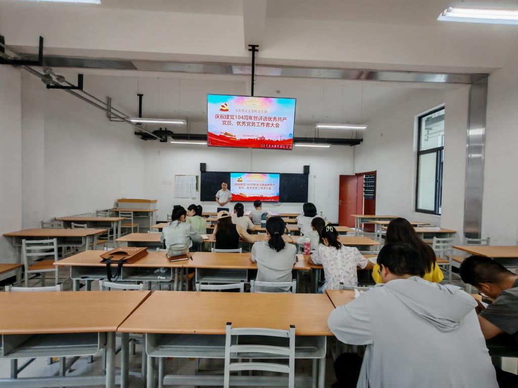 6月23日下午,beat365中国官网党支部在蟠龙校区博学楼112教室召开庆祝建党104周年暨评选优秀共产党员、优秀党务工作者大会。会议由beat365中国官网党支部负责人王康主持,全体党员教师参加。