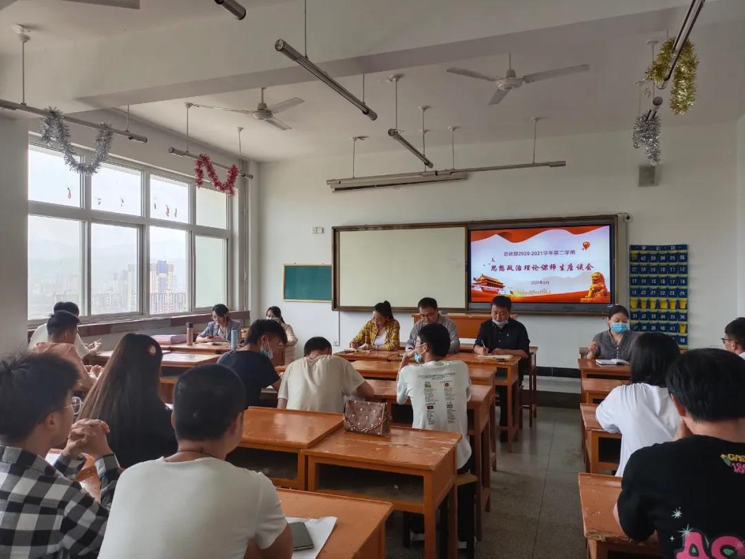 为更好的了解员工对思想政治课教学方面的意见和建议,推进思政课改革创新,4月26日下午,思政部在教学楼509教室召开宝福路校区2020-2021学年第二学期期中思想政治理论课师生座谈会,6名思政课专任教师和40多名员工代表参加会议,会议由思政教研室主任王康老师主持。