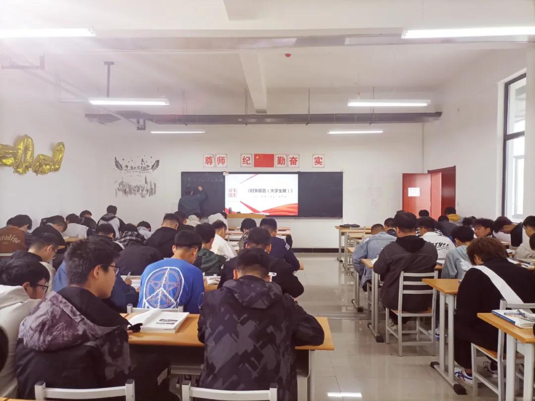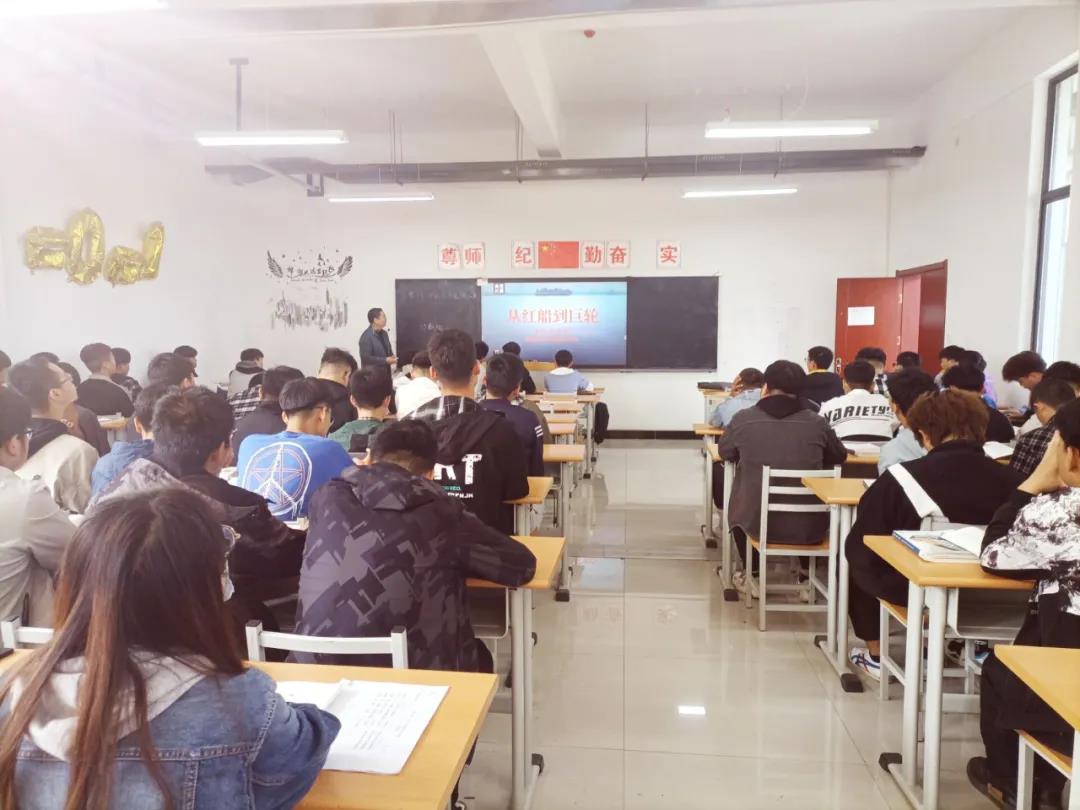 4月19日上午3-4节课,beat365中国官网党委副书记邓新治在蟠龙校区博学楼317教室为18机电五年2、20机电技术2班员工上形势与政策课,讲授《中国共产党为什么能》和《收官“十三五”实现新跨越》两个专题内容。