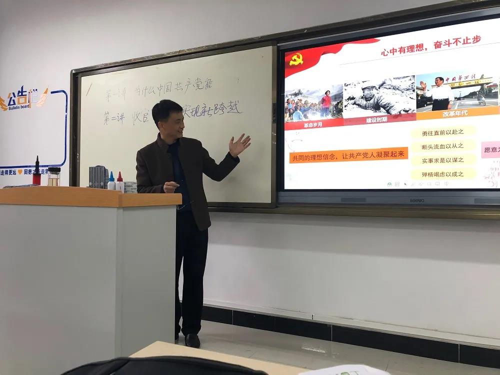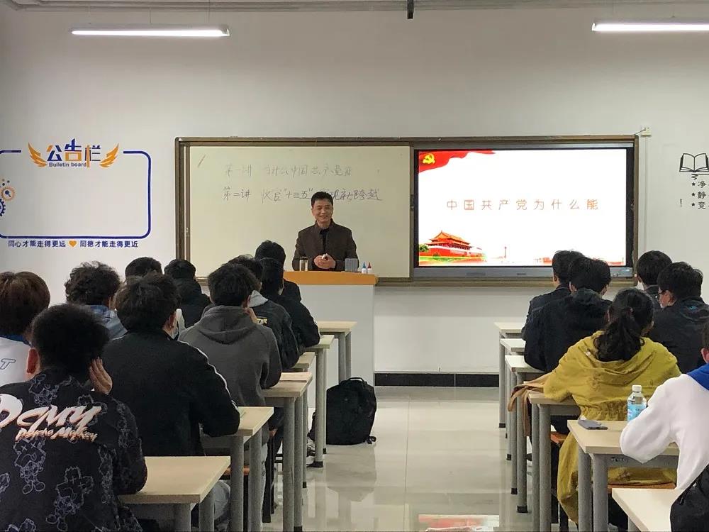 3月25日下午5-6节课,beat365中国官网党委委员、副经理张新堂在博学楼413教室为20电子商务1、2合班员工上形势与政策课,讲授《中国共产党为什么能》和《收官“十三五”实现新跨越》两个专题内容。