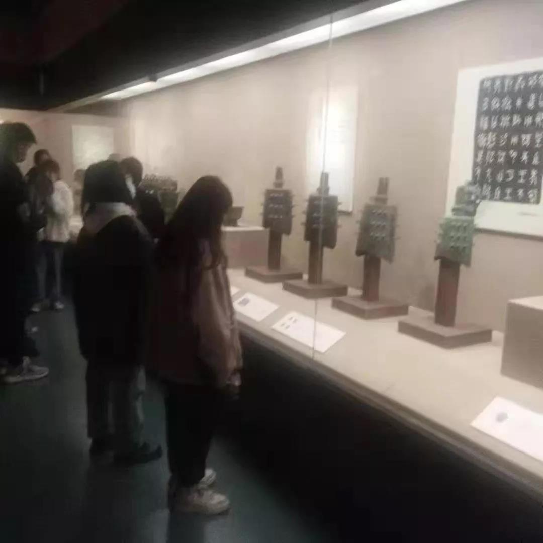 在宝鸡市青铜器博物院,师生在讲解员的带领下依次参观学习了“青铜之乡”、“周礼之邦”、“帝国之路”、“智慧之光”等展厅。通过现场讲解、实物观摩、识字游戏等活动,同学们仿佛置身于风云变幻的周王朝,与历史对话。认真聆听“何尊”等青铜器背后的故事,探讨着“中国”两个字最古老的内涵。大家被一件件造型精美绝伦的青铜器所折服,同时也让大家感叹周秦先祖的睿智和伟大。同学们通过讲解员的细心讲解深入了解了周族兴起、古公迁岐、武王灭商、分封诸侯、周公礼制、秦君游猎、穆公称霸等历史事件,知道了周礼之邦宝鸡的历史底蕴,了解了周秦王朝的各个历史侧面,认识到青铜文化魂之所在。