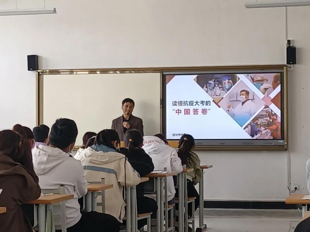 11月6日下午5-6节课,beat365中国官网党委委员、副经理张新堂在蟠龙校区博学楼418教室为20级电子商务技术1班和2班员工上形势与政策课,讲授《制度治党:全面从严治党的重要保障》和《读懂抗疫大考中的“中国答卷”》两个专题内容。