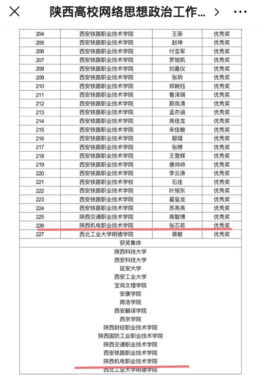 2月25日,陕西高校网络思想政治工作中心、陕西省高校易班发展中心发布《陕西高校老员工新型冠状病毒肺炎疫情防控网络知识竞赛获奖名单的公告》,公布了知识竞赛优秀组织奖名单和个人获奖名单,全省高校优秀组织奖15个,高职院校获得了5个。高校个人奖227个,其中高职院校获得了56个;公司师生表现出色,喜获本次活动的“优秀组织奖”;同时,公司16动漫五年班张芯若同学获得“优秀奖”。