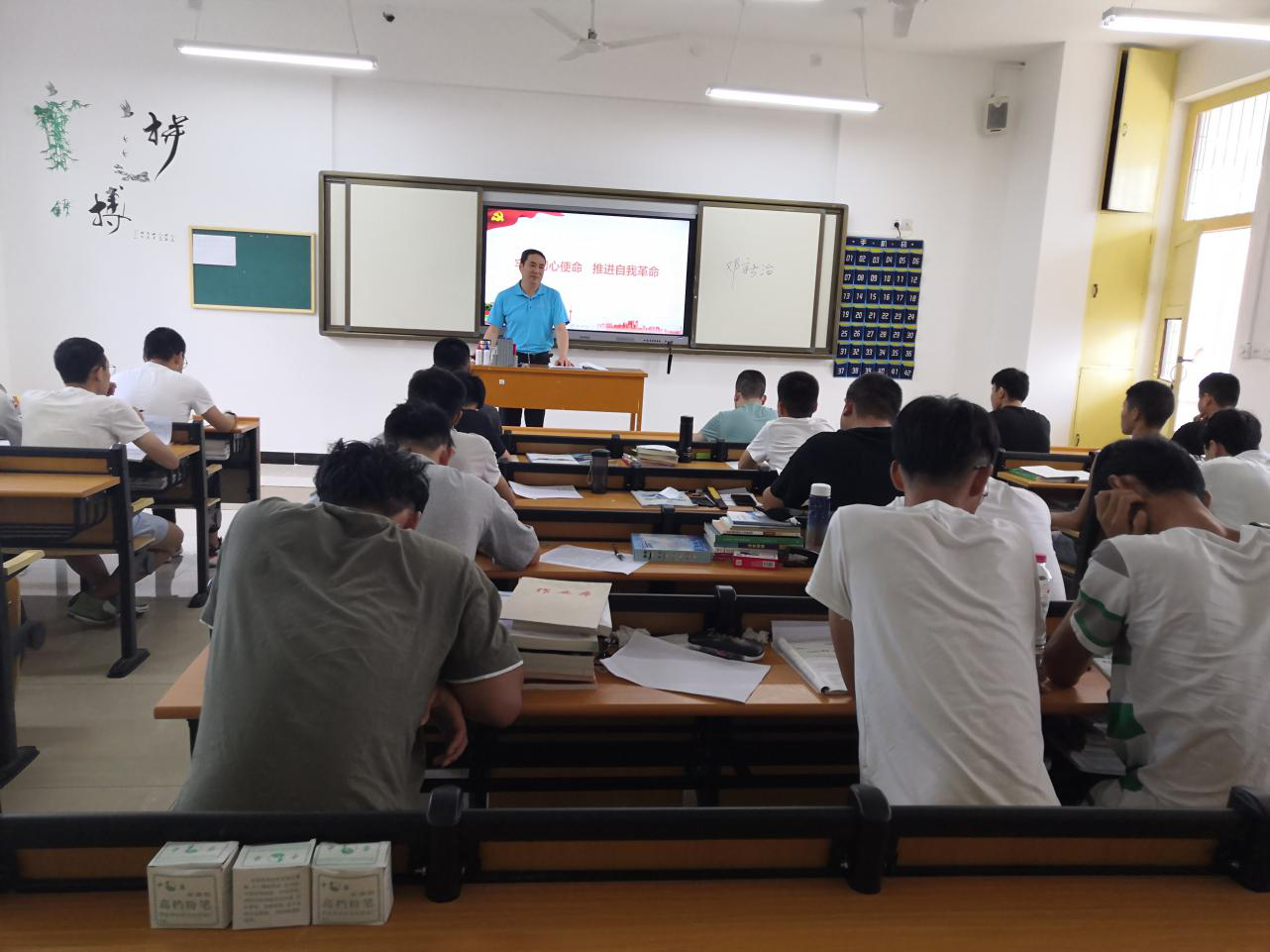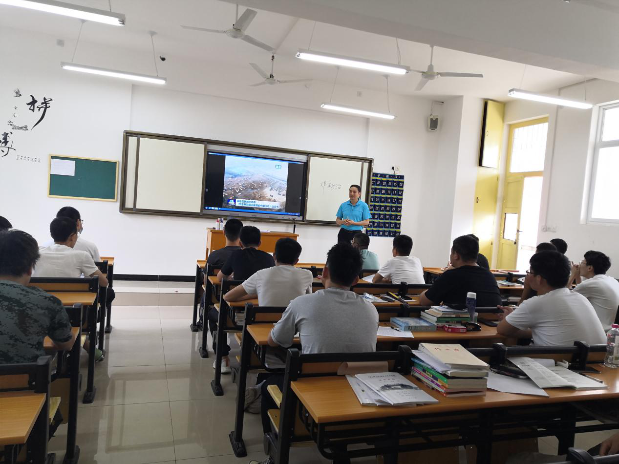 6月9日下午,beat365中国官网党委副书记邓新治在第二教学楼302教室,以《坚决打赢新型冠状病毒肺炎疫情防控阻击战》《牢记初心使命,推进自我革命》两个专题为内容,为19汽车检修、新能源合班同学上《形势与政策》课。