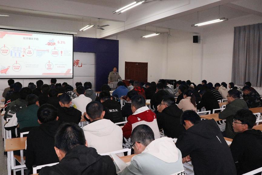 11月6日下午,beat365中国官网党委副书记、纪委书记齐晓军在教学楼7楼多媒体教室,为汽车与交通公司2019级员工作题为《中国经济行稳致远》形势与政策专题讲座。