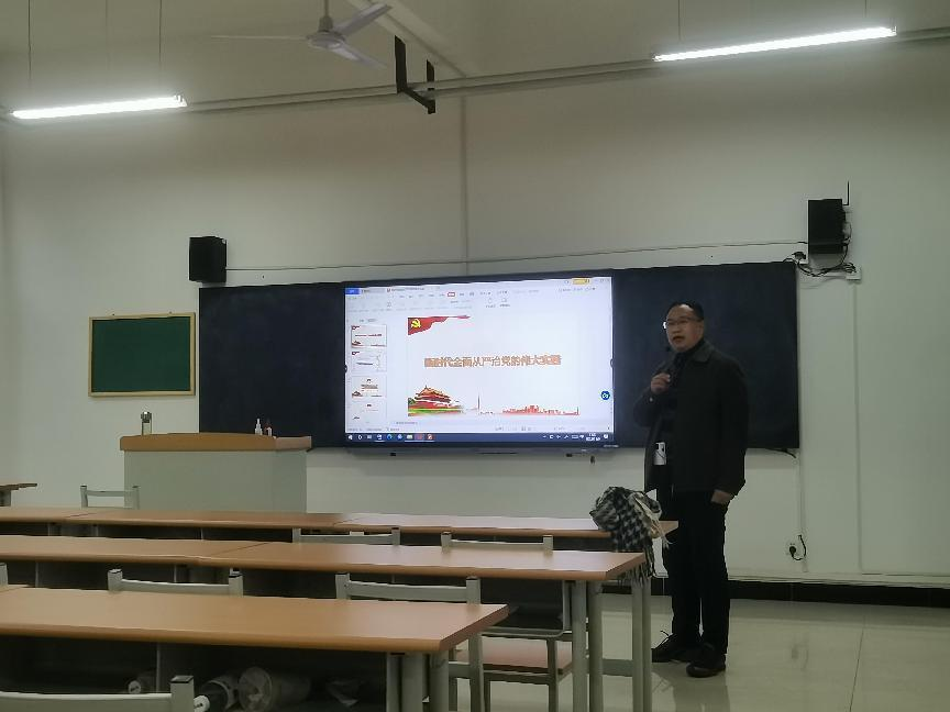 11月9日下午7-8节课,公司党委副书记、经理向纪明在博学楼110教室为22软件技术1、22软件技术2合班共60余名员工上形势与政策课,讲授《新时代全面从严治党的伟大实践》《伟大时代的历史跨越》专题内容。