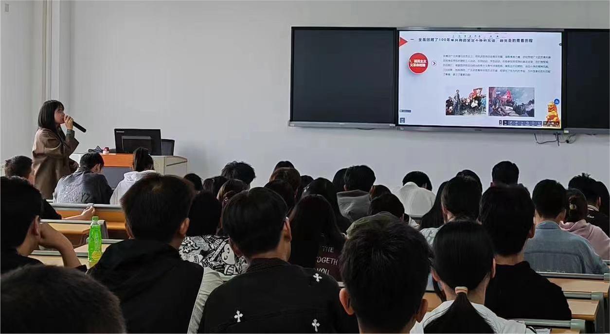 任老师通过“庆祝中国共产主义青年团成立100周年大会介绍”话题展开讲述,讲述了中国共产主义青年团的初心和使命;其次讲解了“庆祝中国共产主义青年团成立100周年大会讲话精神”,通过“全面回顾了100年来共青团坚定不移听党话、跟党走的青春历程”“充分肯定了共青团在党的领导下、团结带领一代代团员青年为实现中华民族伟大复兴中国梦所作出的重要贡献”“深刻阐明了共青团和青年工作的历史经验”“对当代青年寄予殷切期望”“对做好新时代共青团工作提出明确要求”五个方面告诉大家,身为入团积极分子应该如何去做。