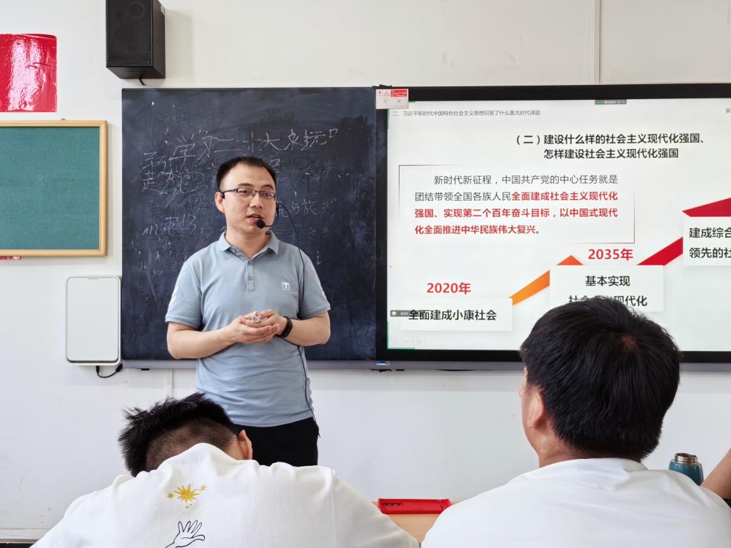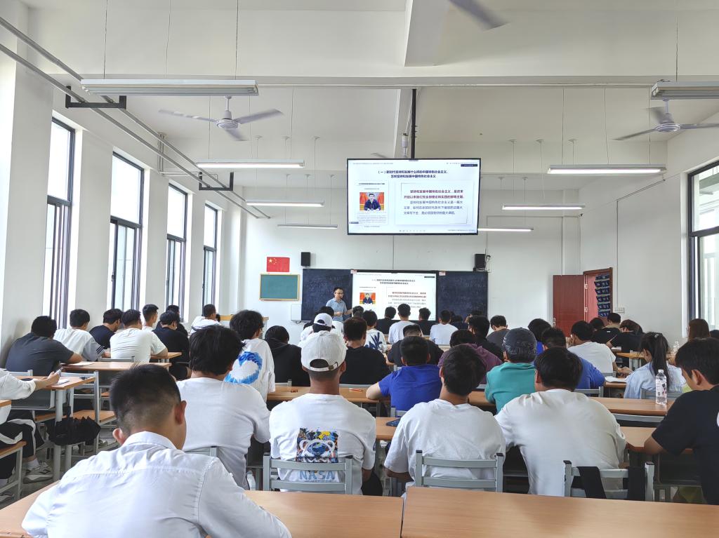 王老师从“习近平新时代中国特色社会主义思想是如何创立的”“习近平新时代中国特色社会主义思想回答了什么重大时代课题”“习近平新时代中国特色社会主义思想主要包含哪些内容”“如何把握习近平新时代中国特色社会主义思想的世界观和方法论”“如何理解新时代中国特色社会主义思想的历史地位”“如何学好用好习近平新时代中国特色社会主义思想”六个方面讲述有关习近平新时代中国特色社会主义思想的相关内容,使大家对习近平新时代中国特色社会主义思想有了一个宏观认识,并强调当代青年要肩负起责任,做好新时代建设的后备军。