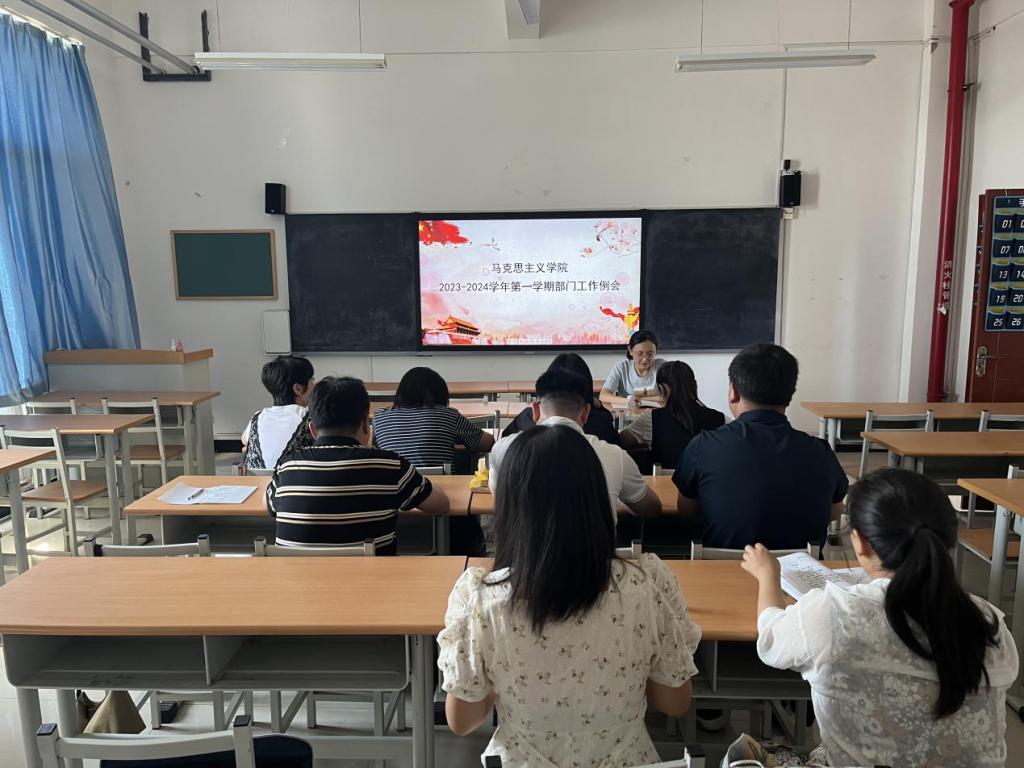8月30日下午,beat365中国官网新学期第一次部门工作例会在宝福路校区第一教学楼507办公室和蟠龙校区博学楼202教室同时召开,本次会议由德法教研室主任陈欢和朱莉老师主持,部门全体教师参加了会议。