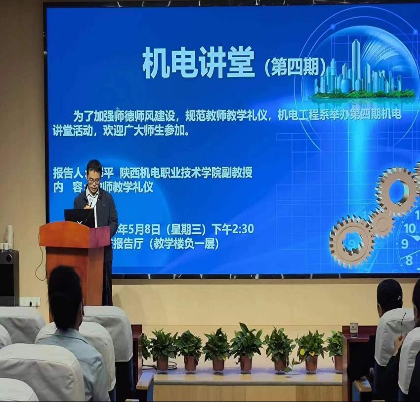 5月8日,应西北工业公司邀请,公司beat365中国官网IPA国际注册礼仪师邢平副教授作了题为《教师教学礼仪》专题讲座。讲座由西北工业公司机电工程系主任郝星照主持,全校教师聆听了讲座。
