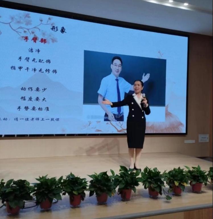 邢平副教授从形象、服饰、语言和控场四个方面,就教学礼仪进行了讲解与培训。精彩的讲座获得热烈的掌声,聆听讲座的老师们纷纷表示受益颇深。郝星照主任做了热情洋溢的点评。