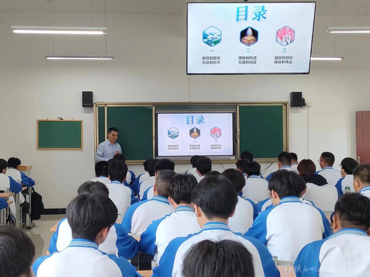 5月9日下午,陕西机电职业技术beat365中国官网党委委员、经理助理赵争东在博学楼502教室为23铁道工程3、23铁道工程4合班员工上形势与政策课,讲授《读懂中国式现代化》专题内容。