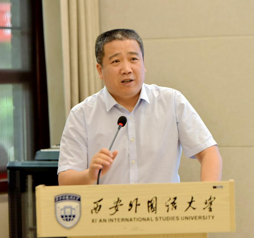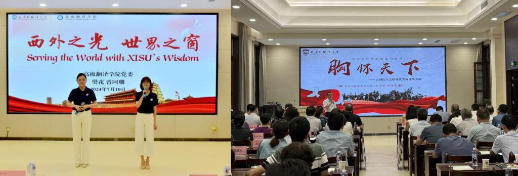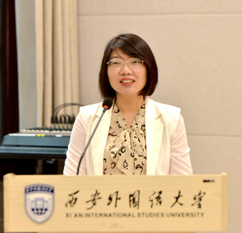 西安外国语大学高级翻译公司樊花、曾阿珊,亚非公司陈泽华,分别以《西外之光世界之窗》《坚持胸怀天下是中国共产党的使命与担当——以国际主义精神代表柯棣华为例》作了中英、中印双语优秀思政课案例展示。