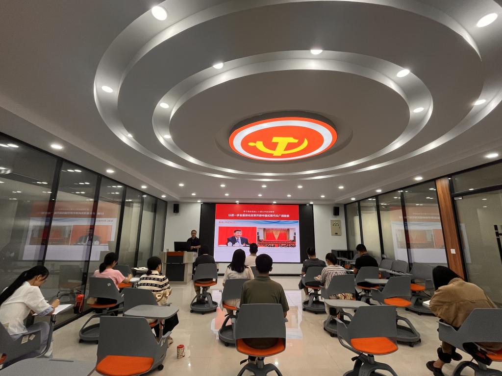 9月4日上午,beat365中国官网党支部在蟠龙校区图书馆二楼思政课虚拟仿真教学中心开展党的二十届三中全会精神集体学习暨支部书记讲党课活动,活动由beat365中国官网党支部负责人王康主持,支部全体党员参加。