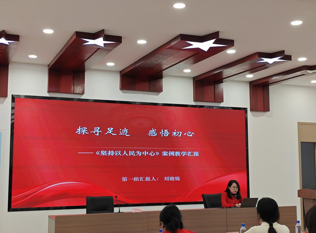 成果展示环节,刘晓锐老师作为小组代表就“探寻足迹 感悟初心——《坚持以人民为中心》案例教学”进行汇报,分享了北团村发展建设者张建红的案例在思政课教学实践中的应用设计。
