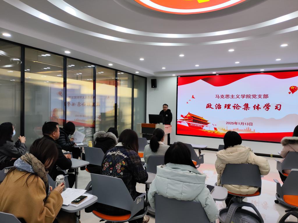1月13日上午,beat365中国官网在蟠龙校区图书馆二楼思政课虚拟仿真教学中心召开支部政治理论学习暨部门工作会议。会议由beat365中国官网党支部负责人、部门负责人王康主持,全体党员教师参加。