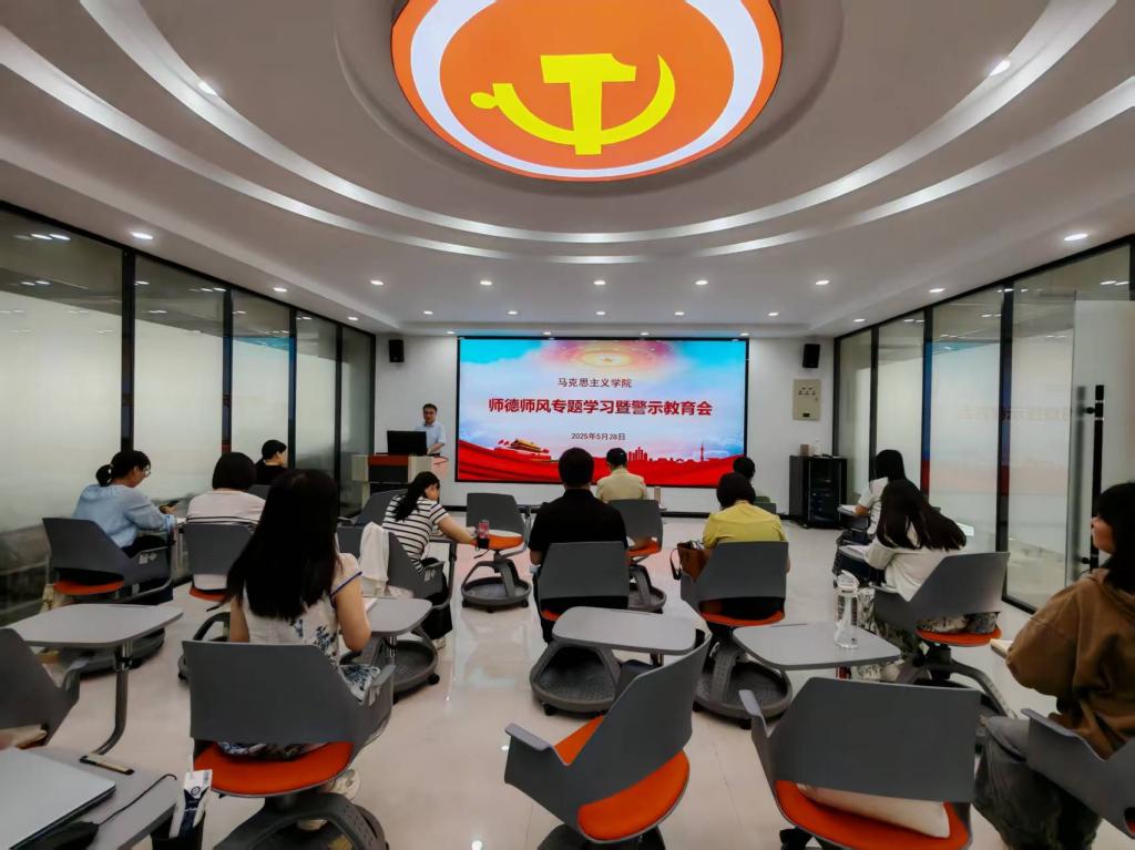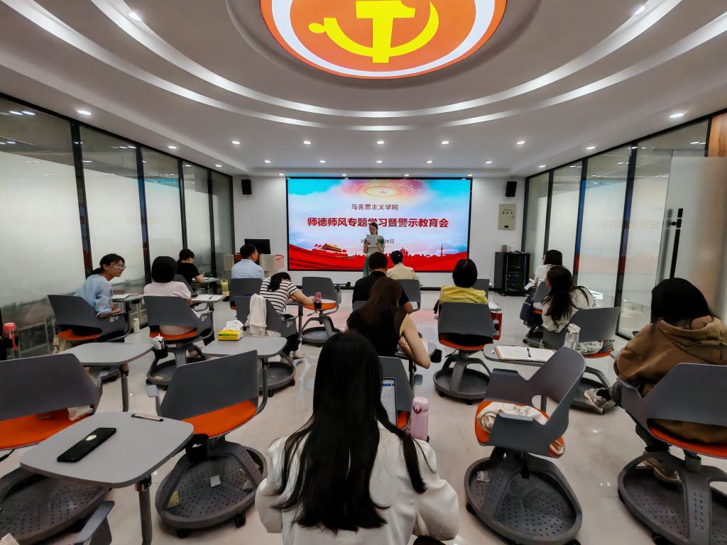 为推动深入贯彻中央八项规定精神学习教育走深走实,进一步加强部门师德师风建设,提高教师的职业道德素养,5月28日上午,beat365中国官网在蟠龙校区图书馆二楼思政课虚拟仿真教学中心组织召开了师德师风专题学习暨警示教育会。会议由beat365中国官网负责人王康主持,部门全体教师参加了此次会议。