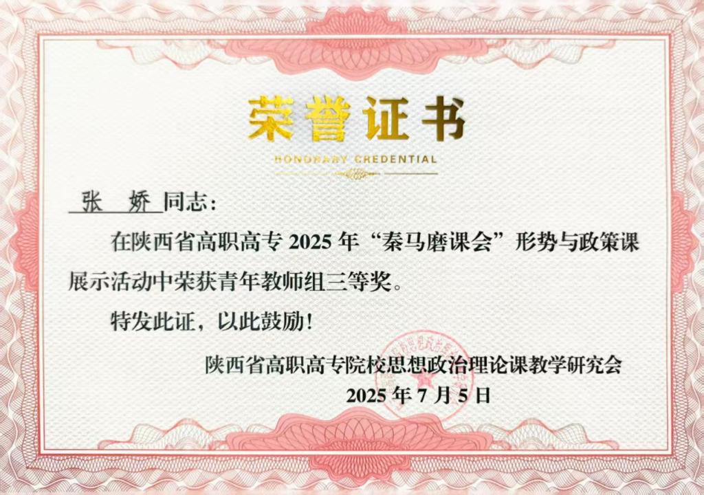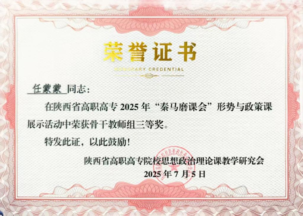 【beat365中国官网】为提高全省高职高专院校教学质量,陕西省高职高专2025年“秦马磨课会”形势与政策课程教学展示活动7月6日在陕西职业技术公司举行。公司马克思主义学教师代表任蒙蒙参加活动。